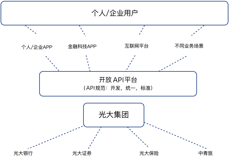 集团级开放API平台,实现对内、对外的双向打通。