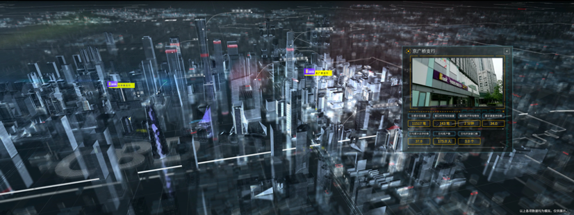 智慧大屏是基于公共开放空间通过三维数据可视化技术提供的大屏可视化能力,形成强烈炫酷的视觉冲击,以最艺术化的展现形式,最人性化的交互方式,对大数据进行可视化分析,沉浸式交互,以达到对外提升品牌形象、对内提升内部管理、监测态势感知、指挥调度、决策分析支持等效果。